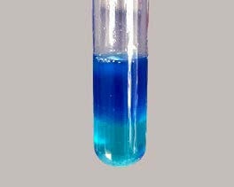 Nach kräftigem Schütteln ist die obere Phase intensiver blau gefärbt als die untere.