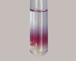 Nach vorsichtigem Schwenken färbt sich die obere Phase rötlich, die Berührungsfläche tief rubinrot.